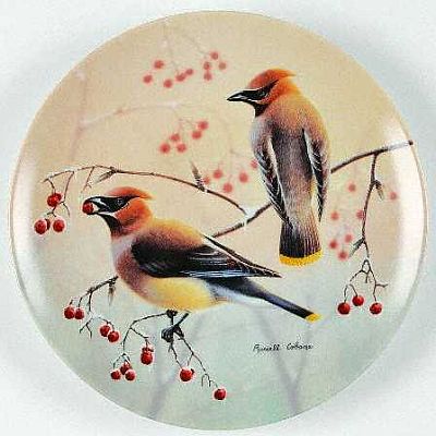 1991 Cedar Waxwing and Winter Berries