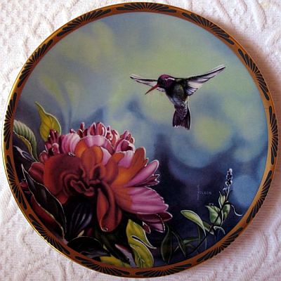 1991 White-eared Hummingbird and Peonies