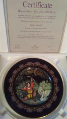 Grade: New/Mint Asking Price: $50.00 Added: 04-02-2016 Member: [Linda Campbell] Location: Smyrna, Tennessee 37167 Serial: None With Certificate of Authenticity With Box Magical Fairy Tales from Old Russia: Prince Gvidon protecting the swan from the black hawk [sign in] to contact member about this plate |