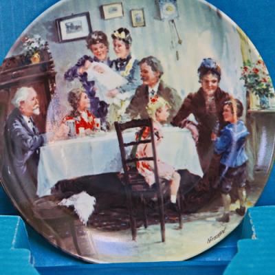 From Berlin Design in West Germany, this beautiful 1986 collector plate is a limited edition (limited to 50 firing days) seventh issue (Bradex number 22-B20-4.7) in the "The Holiday Week of the Family Kappelman" collection, a collection depicting a week-long vacation of the Family Kappelman in Germany's turn-of-the-century golden age. This plate is by artist Detlev Nitschke, is titled "Sunday, August 26, 1894," and is plate number A826 in that issue. This round plate measures 7 1/2 inches in diameter. There are holes in the bottom base ring for hanging purposes. This plate comes with the original certificate of authenticity, informational pamphlets (one in English and one in German), and packaging. When packaged for shipping, the weight will be just over 1 pound. Condition: The condition of the plate is excellent with no chips, cracks, or crazing. I cannot find any scratches or wear in the design. The bottom base ring may have some very slight discoloration. Shipping wil be about $11.00 for domestic and from $16 to $23 for international. |