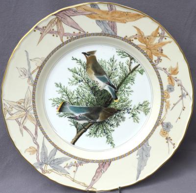 This plate features the CEDAR WAXWING and is from the Royal Worcester James J. Audubon Series of Plates, commissioned by the New York Historical Society.? It is the fifth plate in the series, dated 1978 and issued in a limited edition of just 5,000 plates.? The design is reproduced from an original watercolor by James J Audubon.? ?Fine English bone china, diameter approximately 10.75 inches (just over 27 cm). ???Appropriately marked on the back, including the Royal Worcester trademark.? The beautiful cream color border is decorated with asymmetrical leaves and berries reflecting a strong Japanese aesthetic influence. EXCELLENT CONDITION (no chips, cracks, or repairs) and FIRST QUALITY (no scratch through the trademark).? Old dealer stock, never displayed or sold at retail.? A truly magnificent plate!? No Box or paperwork, otherwise it would be listed as NEW / MINT. |