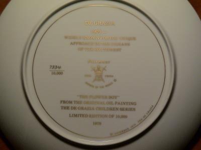 Grade: New/Mint Asking Price: $60.00 Added: 03-07-2013 Member: [hawkflyer] Location: Manassas VA. 20111 Serial: 6416 No Certificate of Authenticity With Box DeGrazia's "Flower Boy" with plate in Mint Condition [sign in] to contact member about this plate |